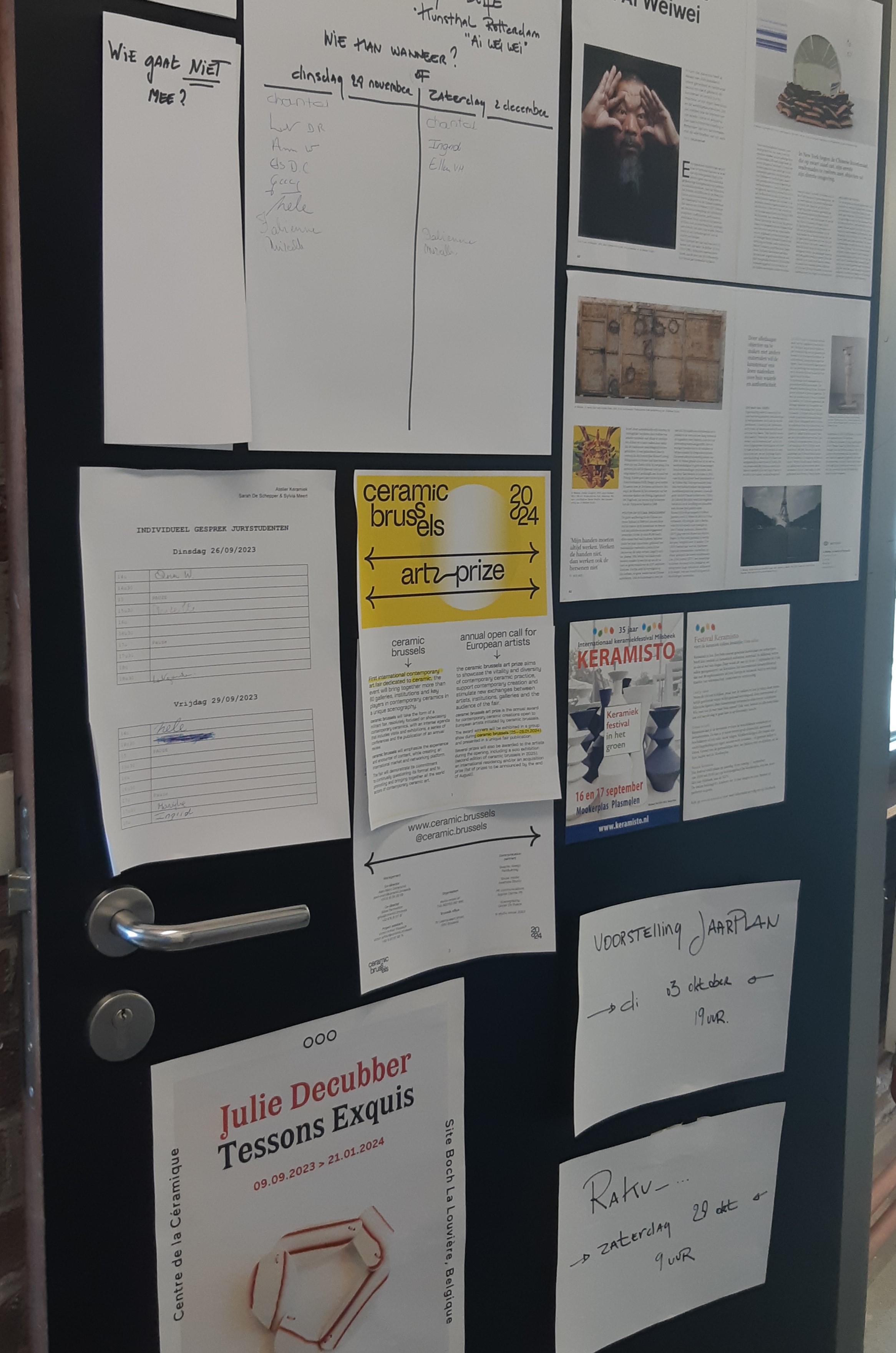 Leerlingen prikkelen en informeren over interessante tentoonstellingen, lezingen of tafelgesprekken kan via een informatie/inspiratiebord bv. bij de deur in het atelier of in een gemeenschappelijke ruimte of via sociale media. (afbeelding)